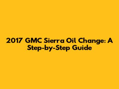 2017 GMC Sierra Oil Change: Your Simple Guide
