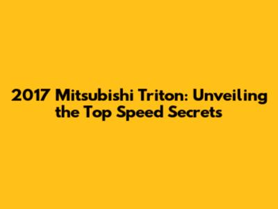 2017 Mitsubishi Triton: Unveiling The Top Speed Secrets