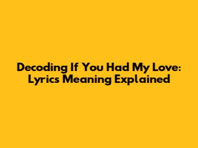 Decoding If You Had My Love: Lyrics Meaning Explained