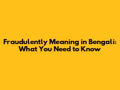 Fraudulently Meaning In Bengali: What You Need To Know