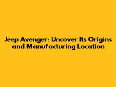 Jeep Avenger: Uncover Its Origins And Manufacturing Location