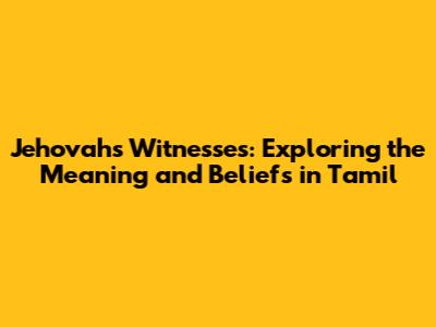 Jehovah's Witnesses: Meaning And Beliefs In Tamil