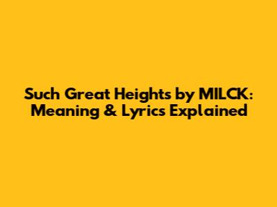Hey music lovers! Ever gotten chills from a song that just hits you right in the feels? Well, that's how I felt the first time I heard MILCK's version of "Such Great Heights." It's an absolute masterpiece, and if you're anything like me, you've probably been listening to it on repeat, trying to decipher every lyric and understand the emotional depth. So, let's dive deep, shall we? This article is your ultimate guide to understanding the meaning and lyrics of "Such Great Heights" by MILCK. We'll break down the song's themes, explore the artistry behind the music video, and analyze the impact of this incredible track. Get ready to have your heartstrings pulled and your appreciation for MILCK's talent amplified!
