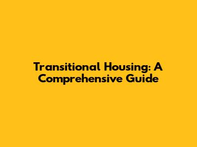 Transitional Housing: A Comprehensive Guide