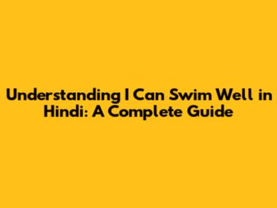 Understanding I Can Swim Well In Hindi: A Complete Guide
