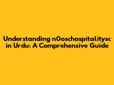 Understanding 'n0oschospitalitysc' In Urdu: A Comprehensive Guide