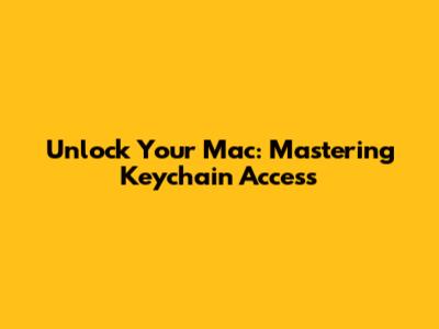 Unlock Your Mac: Mastering Keychain Access