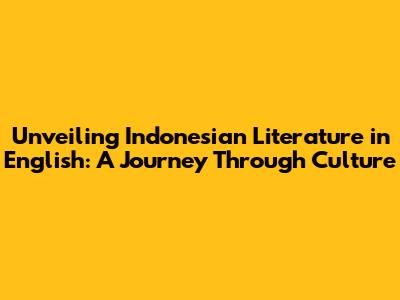 Unveiling Indonesian Literature In English: A Journey Through Culture