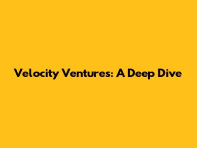 Velocity Ventures: A Deep Dive